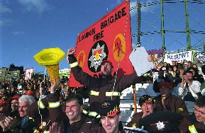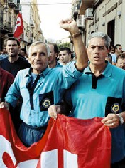 Berlusconis Italien ser en fortsættelse af de omfattende protester, hvor kampen mod regeringens arbejderfjendske politik forbindes med kampen mod oprustning og krig. Det er en væsentlig del af forklaringen på, at hen ved en million demonstrerede i Firenze mod den planlagte Irak-krig.