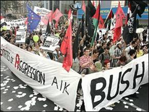 Billeder frademonstrationer mod mr. Bush i Wien onsdag den 21. juni 06: