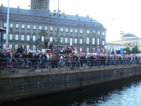 I København anslog arrangørerne at 90.000 deltog i eftermiddagens demonstration på slotspladsen. Det er ikke spor for højt sat. Mere end 100.000 har deltaget i aktiviteterne i byen dagen igennem – fra strejker til besættelser. gadeprotester og fordemonstrationer, hvoraf den største, arrangeret af de uddannelsessøgendes organisationer på Rådhuspladsen havde 50.000 deltagere.