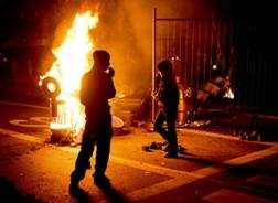Ifølge politiets presse-erklæring blev to politistationer stormet og ødelagt – 26 politifolk blev såret under konfrontationerne. Banegården, en tankstation og flere forretninger blev hærget og omkring 30 biler blev sat i brand.
