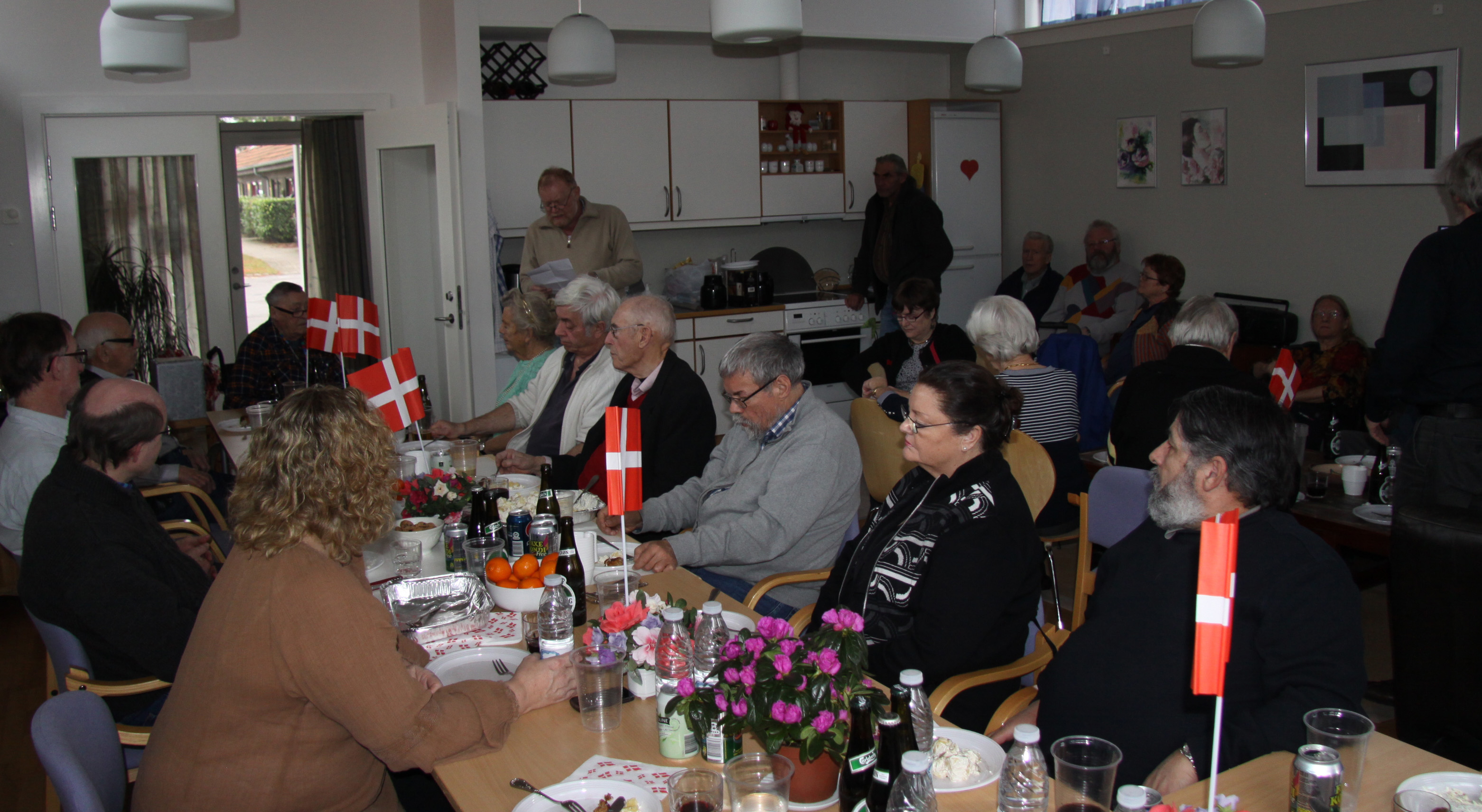 Familie og venner fra et aktivt liv gav en hånd med, der blev stillet an, pyntet med flag og varmet hjemmelavede frikadeller. Der blev overbragt hilsner fra dem, der ikke kunne komme på dagen og givet en bog, en flaske og en blomst.