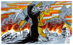 I den igangværende militariserings- og oprustningsproces er det almindelige mennesker der rammes af velfærdsnedskæringer, værnepligt, indskrænkning af ytringsfriheden og anden afvikling af demokratiet. Vinderne er storkapitalen, især våbenindustrien, som modtager enorme summer fra statskassen. Det er simpelthen en gigantisk overførsel af penge fra arbejderklassen til borgerskabet, som overgår overførslerne under covid-pandemien.