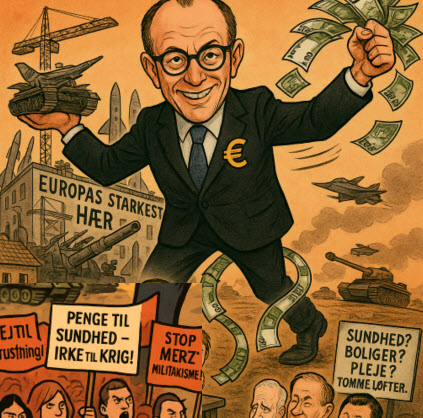 Merz-regeringen i Tyskland planlægger massiv oprustning med mål om at gøre Bundeswehr til Europas stærkeste hær, hvilket kan føre til, at op mod halvdelen af statsbudgettet går til militær. Samtidig sker der kraftige sociale nedskæringer, som rammer befolkningen hårdt. Oprustningen begrundes med truslen fra Rusland, men bruges reelt til at fremme tysk imperialisme.