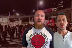 “I december sidste år afholdt medlemmer af vores fagforening en folkeafstemning i omkring 20 havne i Sverige om, hvorvidt vi skulle tage faglige skridt for at blokere militær last til og fra Israel. 68 procent af vores medlemmer stemte ja og informerede arbejdsgiverne om, at vi ville have en seks-dages blokade i januar i år.” “Presset var virkelig voldsomt, og vi stod over for vanskeligheder i domstolene, men i begyndelsen af februar sagde den svenske arbejdsdomstol, at vores handlinger var lovlige, og vi gik videre med dem samme dag som planlagt,” sagde Helgeson.