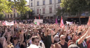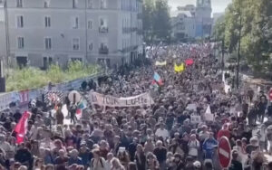 Hundredtusinder af mennesker lukkede i går Frankrig ned med strejker og demonstrationer over hele landet. Den offentlige transport stod stille, da tog-, bus- og sporvognschauffører strejkede, hospitalspersonale deltog i protesterne, og ni ud af ti apoteker var lukket, da apotekerne protesterede mod prispolitikken. Omkring en ud af seks lærere i grundskoler og gymnasier gik i strejke, ligesom kantinepersonale og tilsynsførende. Flere gymnasier fra Paris til Amiens og Le Havre blev blokeret af elever. Også ved atomanlæg var der protester. Der blev afholdt mere end 250 demonstrationer i byer fra Paris til Marseille, Nantes, Lyon og Montpellier. Politiet greb ind med brutalitet og tåregas. Kravene retter sig mod sparepolitik og forhøjelsen af militærbudgetterne, de voldsomme angreb på det sociale område, mod folkemordet i Gaza, mod krig.