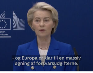 Det er en erklæret målsætning for EU, at være krigsklar i 2030. Ikke alene skal der bruges kolossale summer på militæret, våbnene skal også i stor udstrækning produceres i EU. Den 17. oktober indgik EU, under dansk formandskab således en aftale om Det europæiske forsvarsindustriprogram (EDIP). Der afsættes omkring 11 mia. kr. over 2 år til støtte for medlemsstaternes arbejde med ”udvikling, produktion, anskaffelse og indkøb af forsvarsmateriel. En del af midlerne – 2,2 mia. kroner – skal bruges på forsvarsindustrielt samarbejde med Ukraine.”
