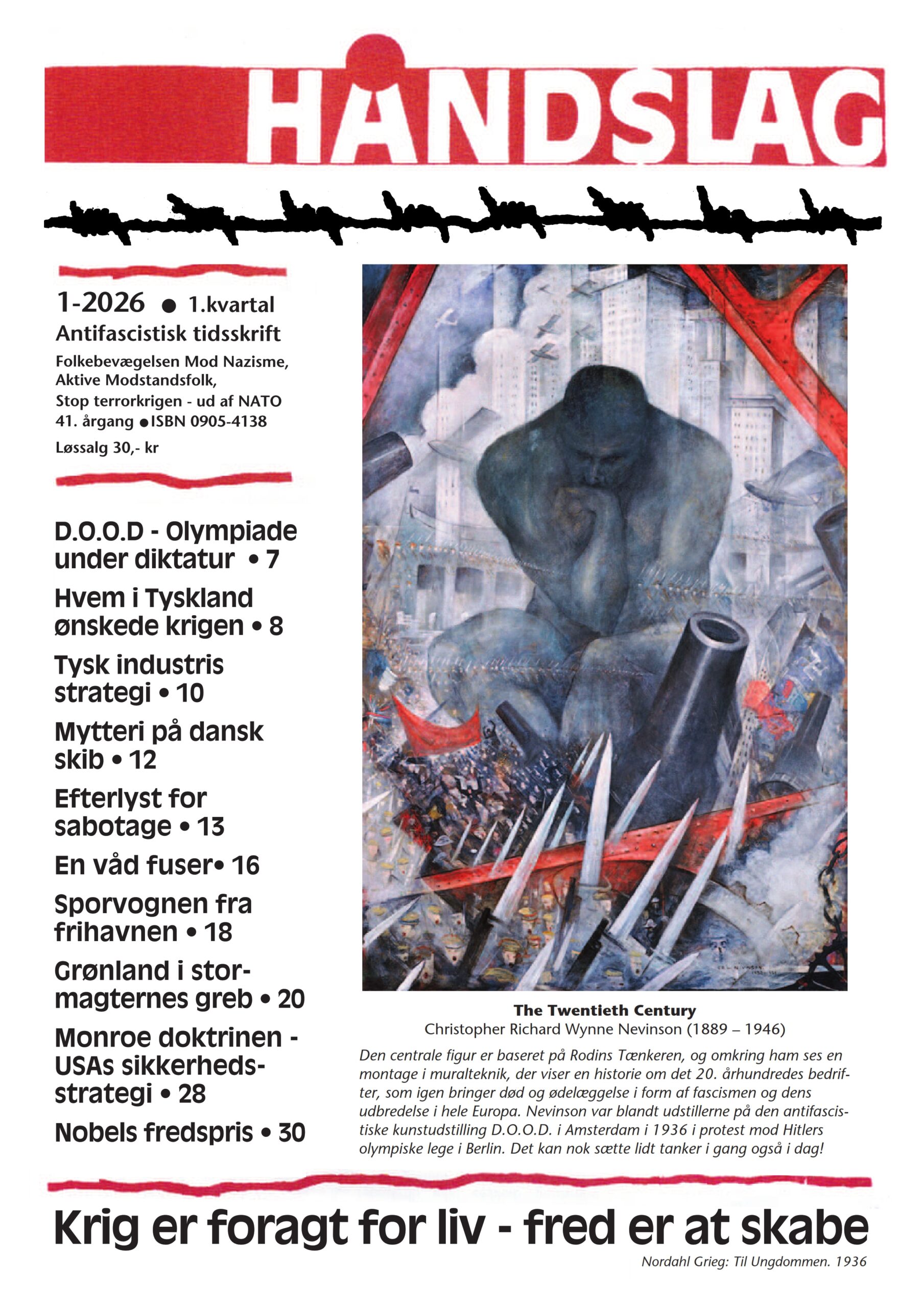 Som bekendt er de olympiske vinterlege netop overstået. Her hører vi om, hvordan fascismens propaganda fremstød i 1936 blev mødt af international modstand – kunstnere, arbejdere og atleter, der nægtede at legitimere nazismens olympiske skuespil. Og hører ligeledes hvordan modstanden i dag mod krig og folkemord manifesterer sig. Bladet beretter om havnearbejdere, der nægter at laste våben. Hvordan politisk protest i Storbritannien forsøges at kriminaliseres som “terror”. Hvordan oprindelige folk i USA afviser ICE’s razziaer.